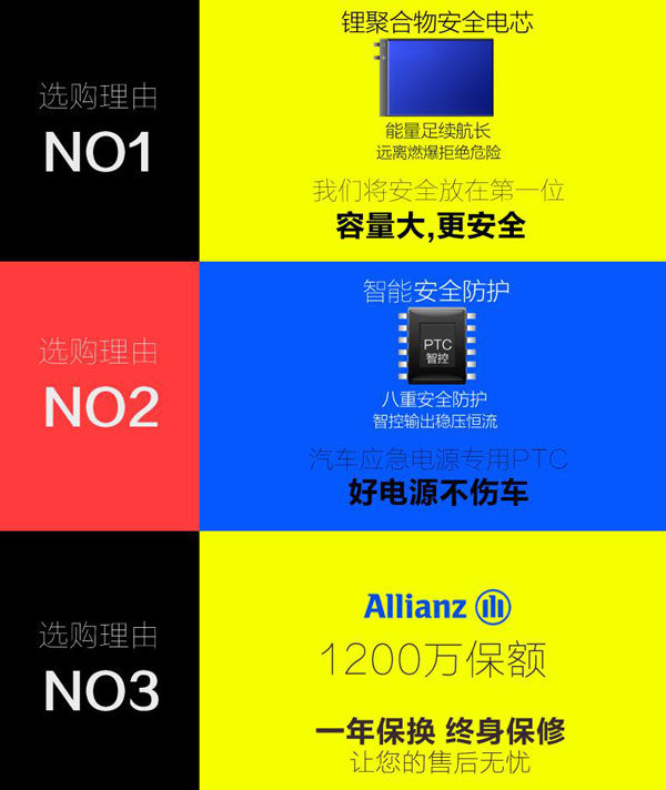 昂佳多功能汽車應急啟動電源作為汽車應急啟動電源領導品牌,安全永遠放在第一位,在消費者中一直擁有絕佳的口碑。產品具有八重安全防護功能,讓消費者買的放心用的舒心。昂佳公司所有產品都購買德國安聯(Allianz)質量責任保險,真正做到讓用戶售后無憂。