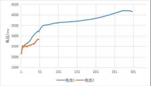 圖三 某18650型號正常電池與內短路電池化成曲線